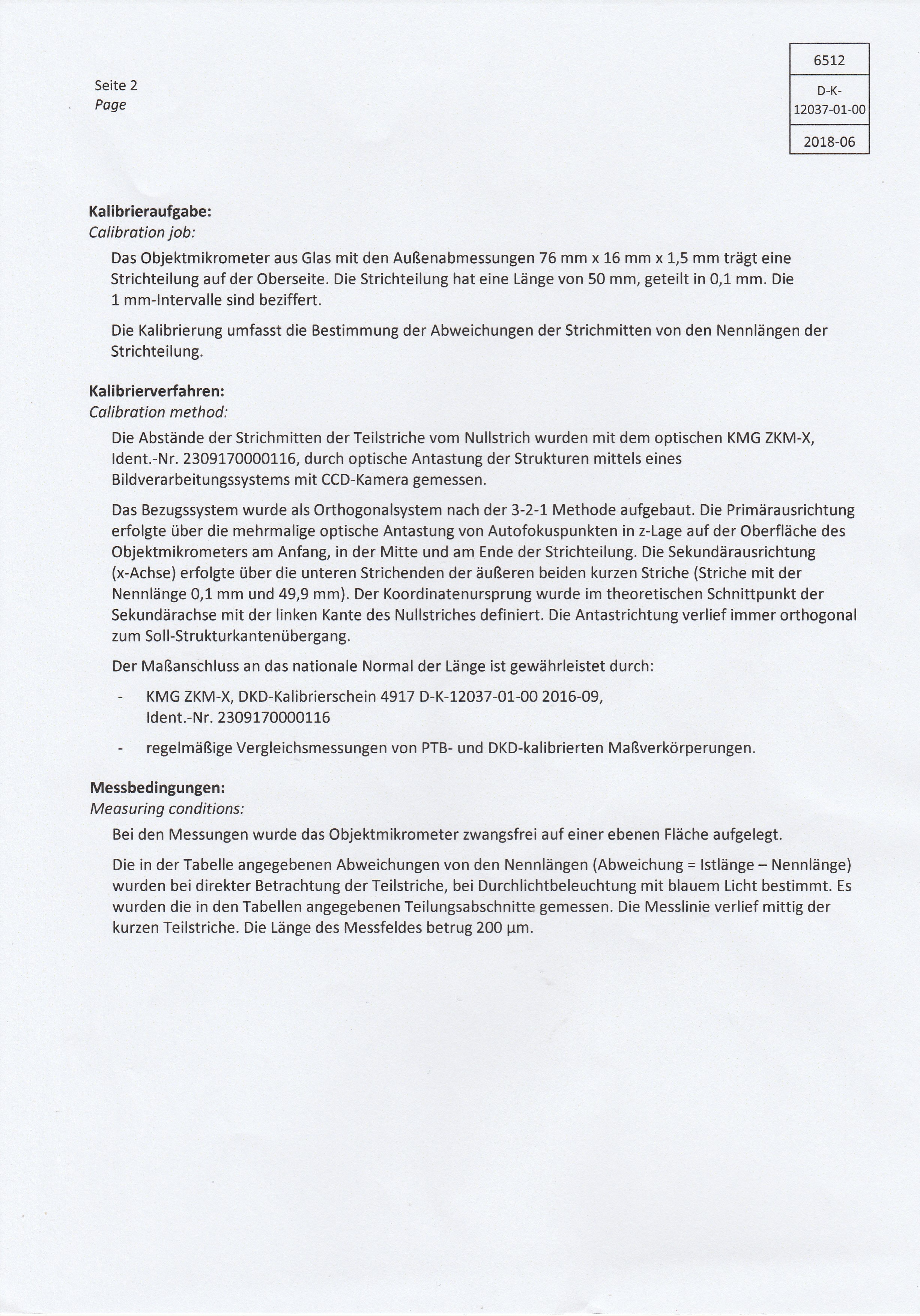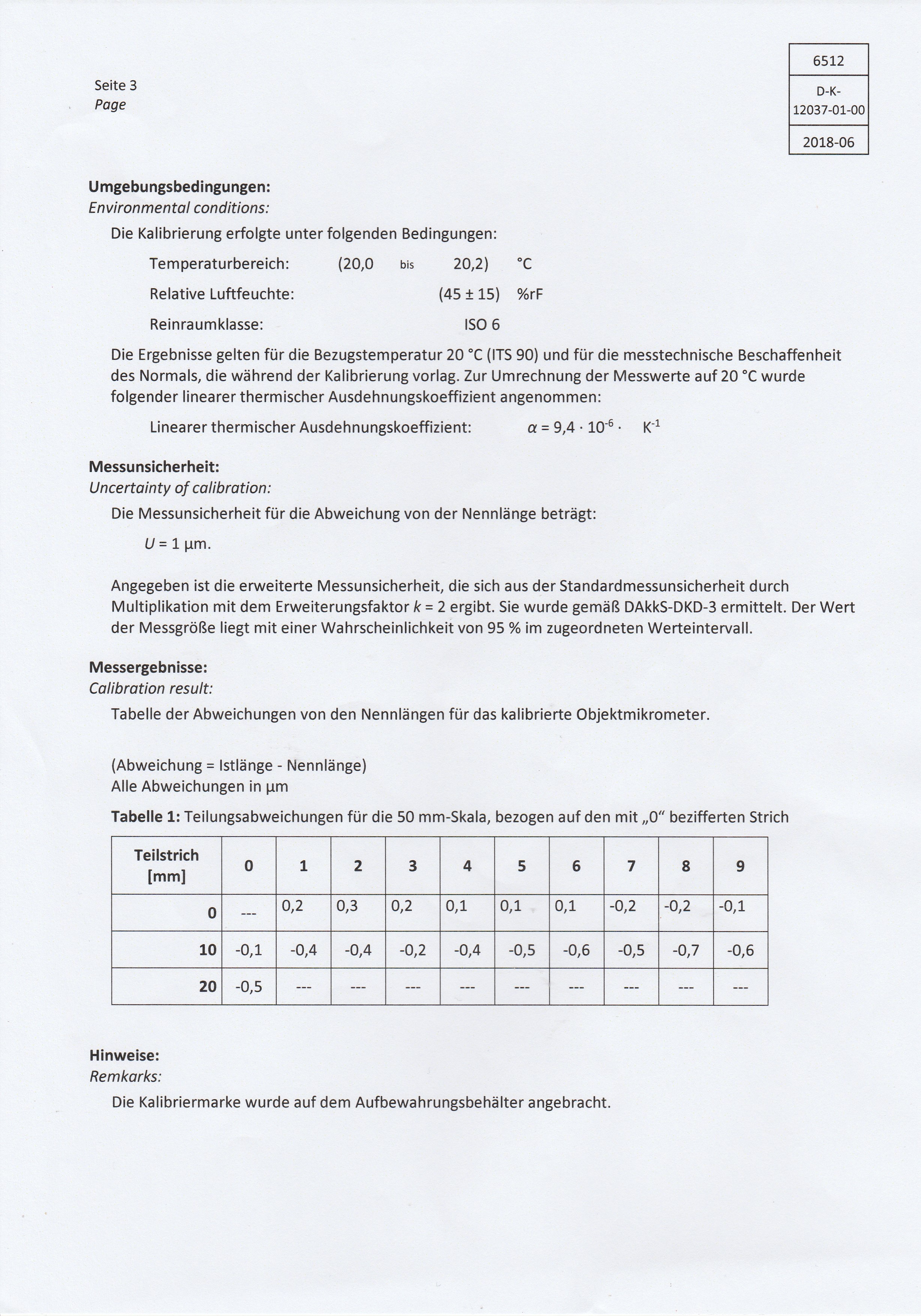 Following you can see the DKD Carl Zeiss Calibration Certificate